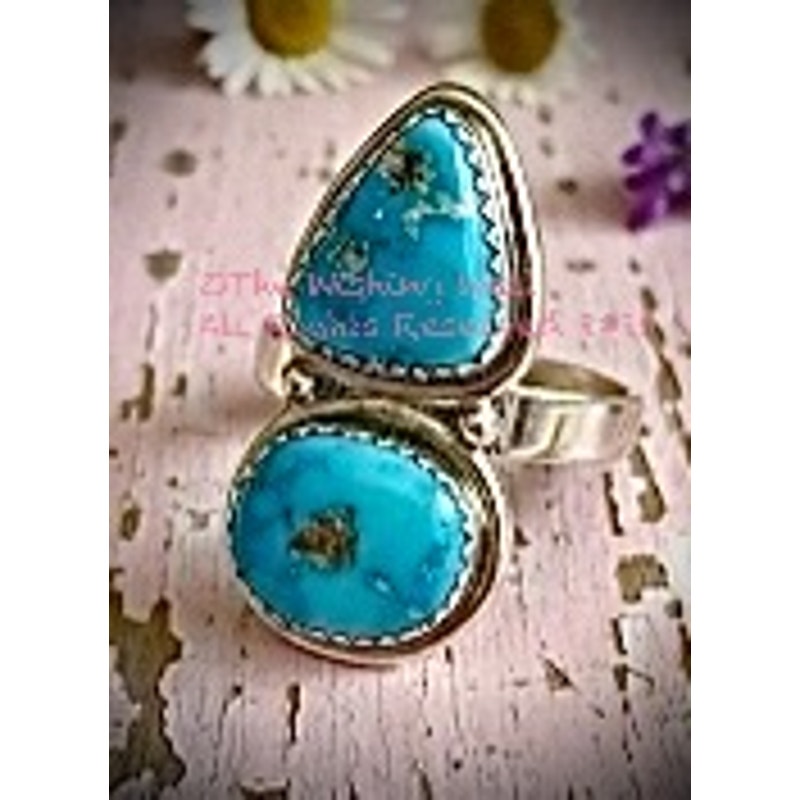 Blue Bird Turquoise | Two Stone Ring | 925 Sterling | Size Adjustable 5-10
