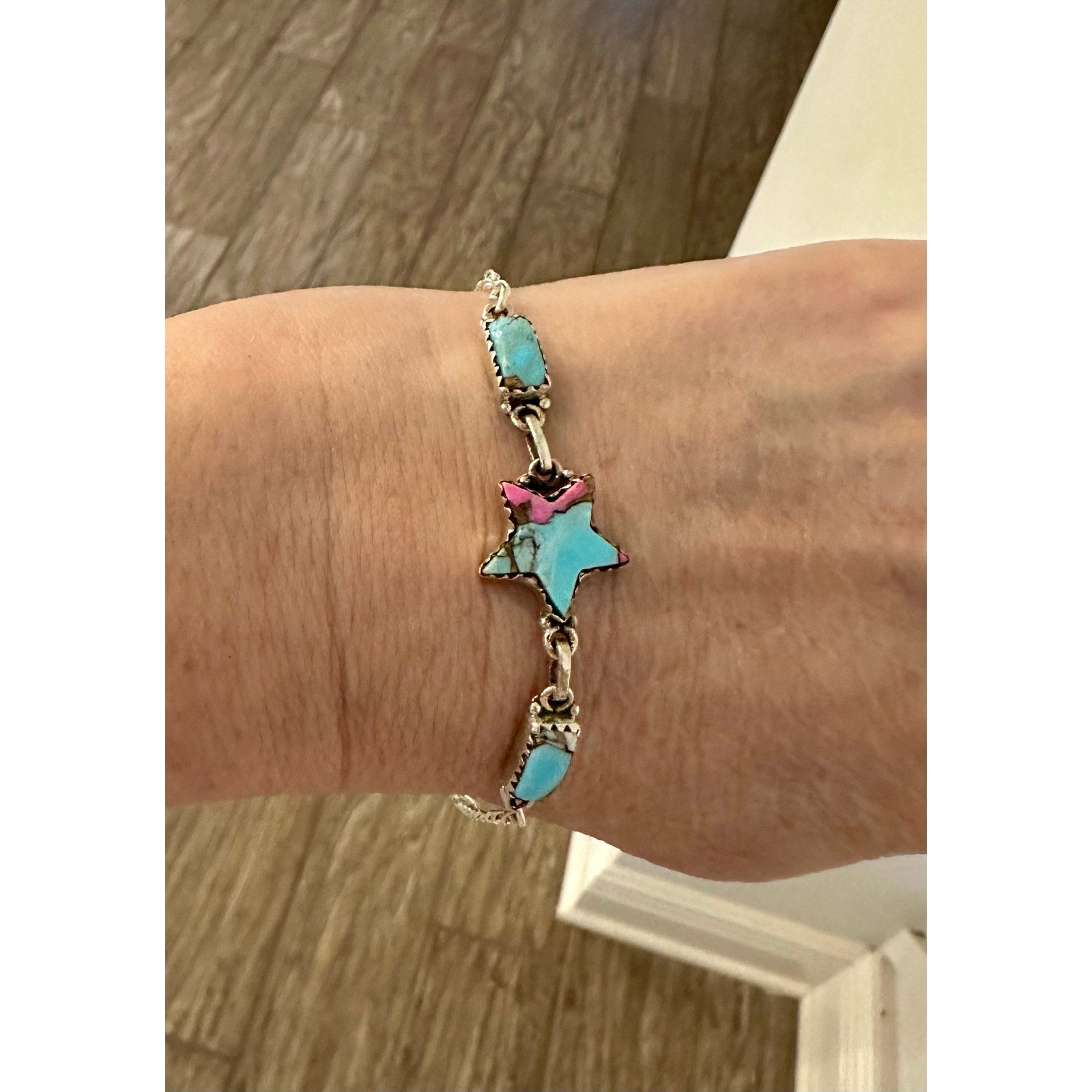 Cotton Candy Turquoise | Star Bracelet | 925 Sterling | Size 6-8” Adjustable