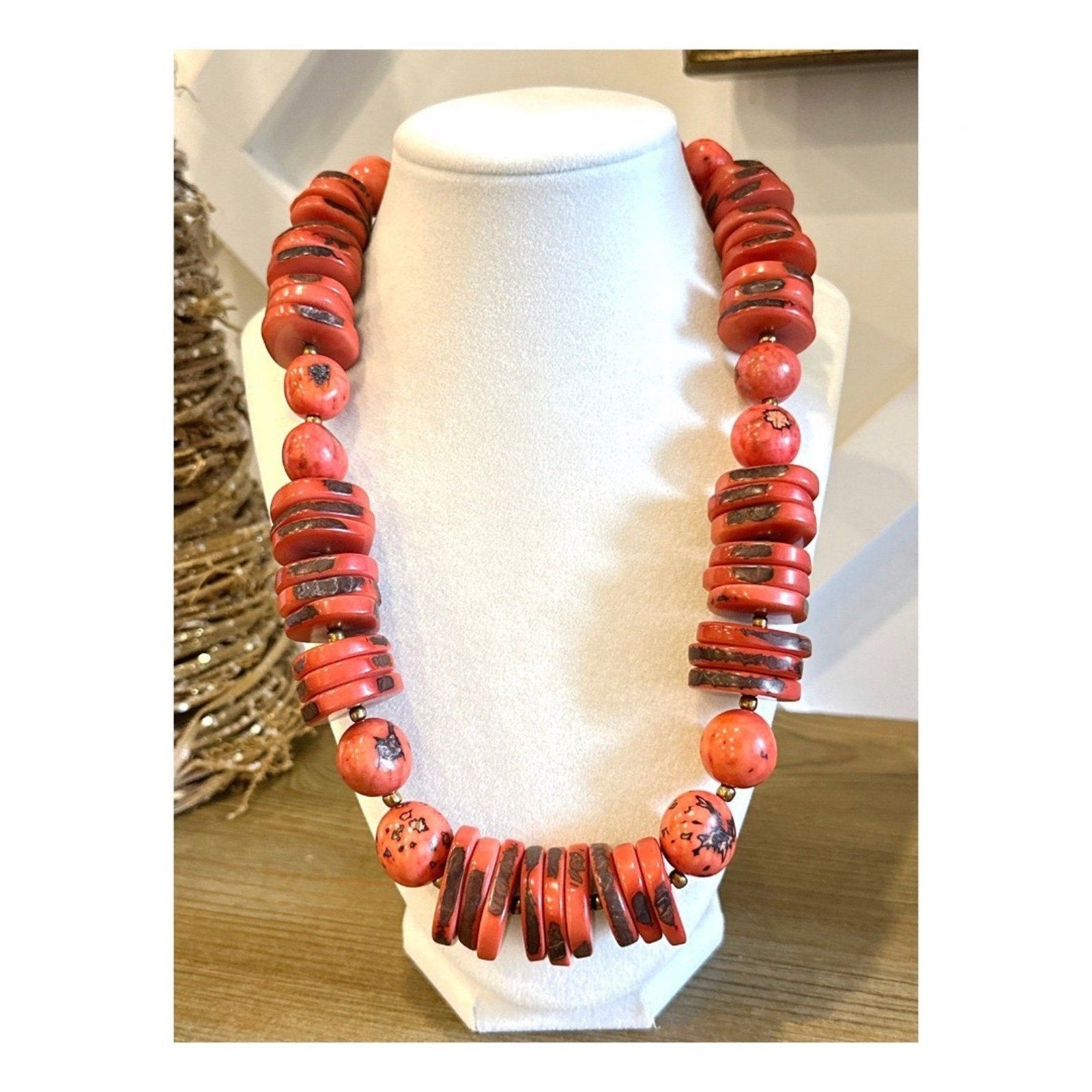 Handmade Tagua Nut Necklace - Eco-Friendly Artisan Jewelry-Pink-18”