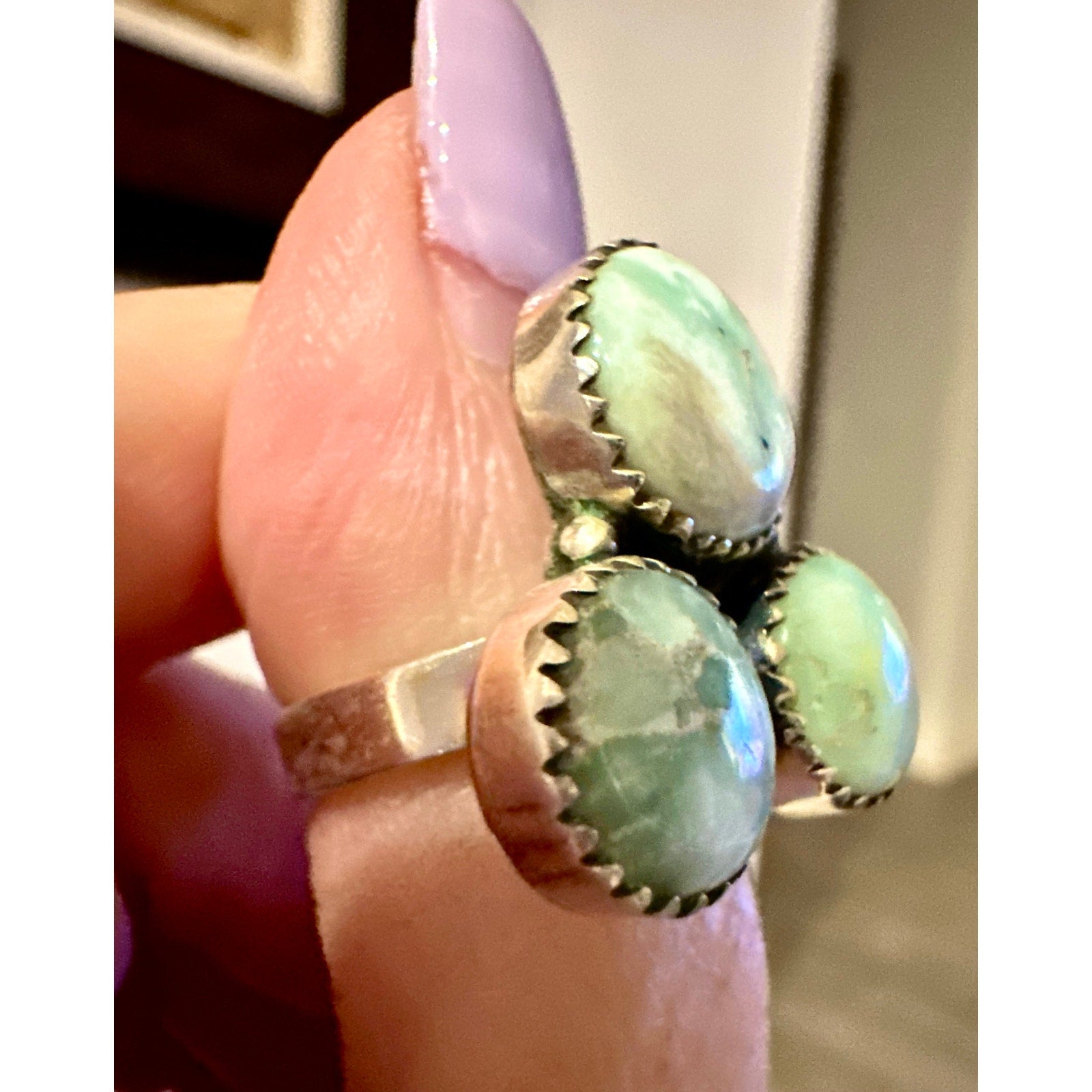 Palomino Turquoise | Three Stone Round | Sterling Ring | Adjustable Size 5-10