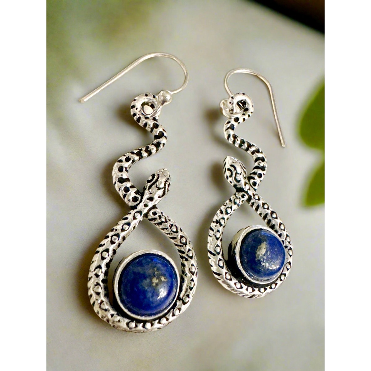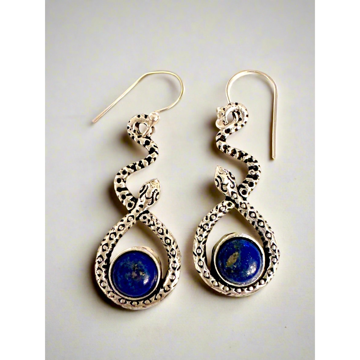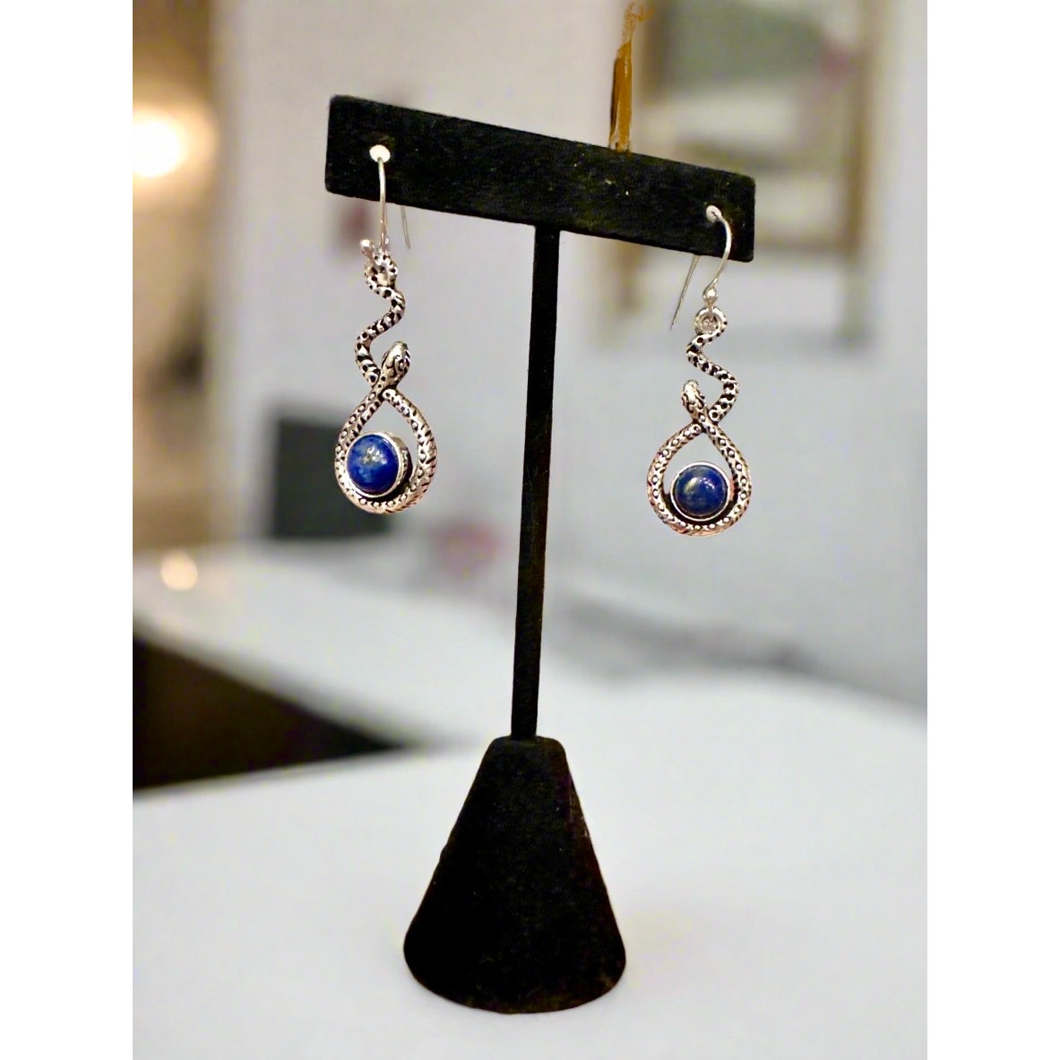 Premium Lapis Lazuli Snake Southwestern Dangle Sterling Earrings 1.75” Long
