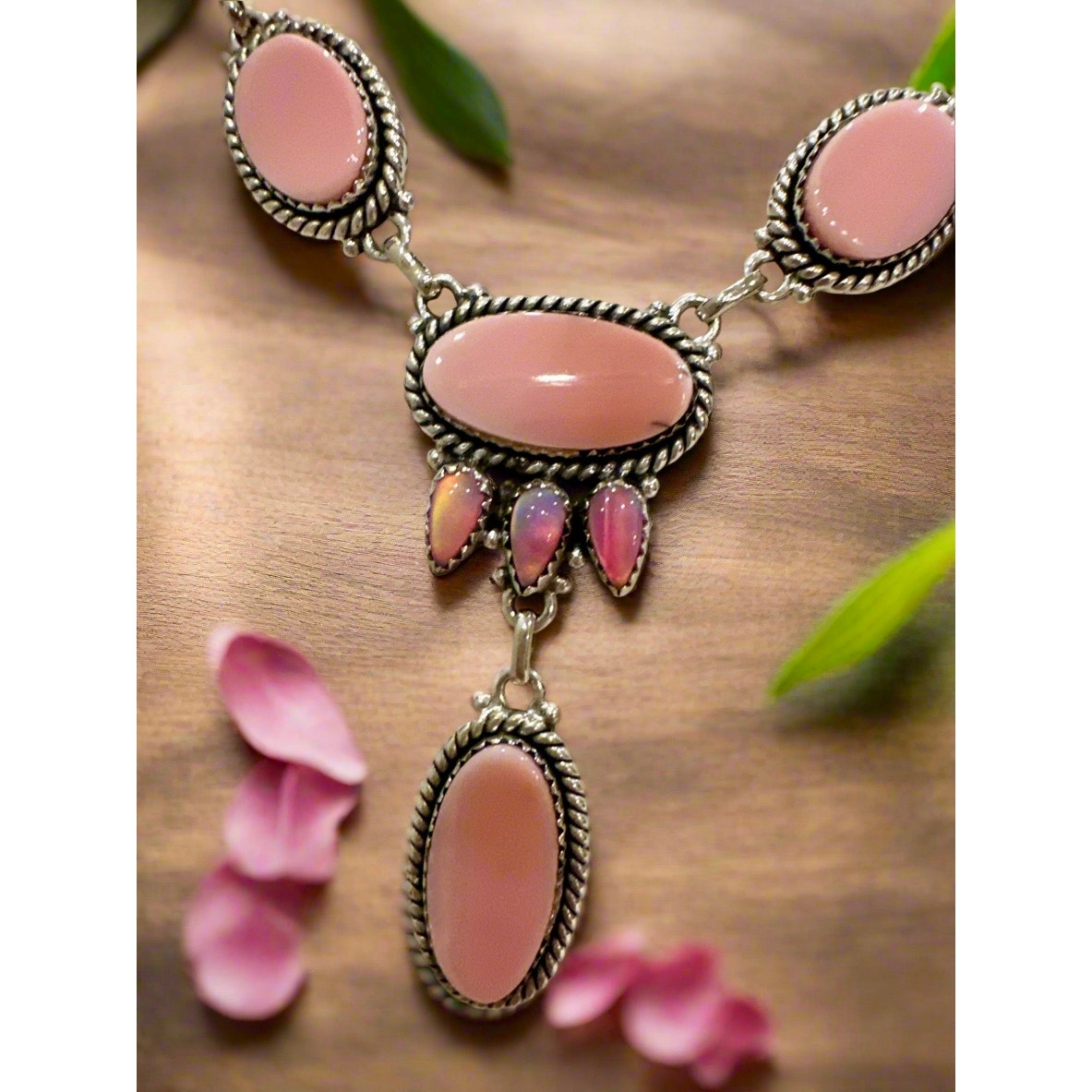 Queen Pink Conch | Aurora Opal | Sterling Silver Necklace | 18-20”