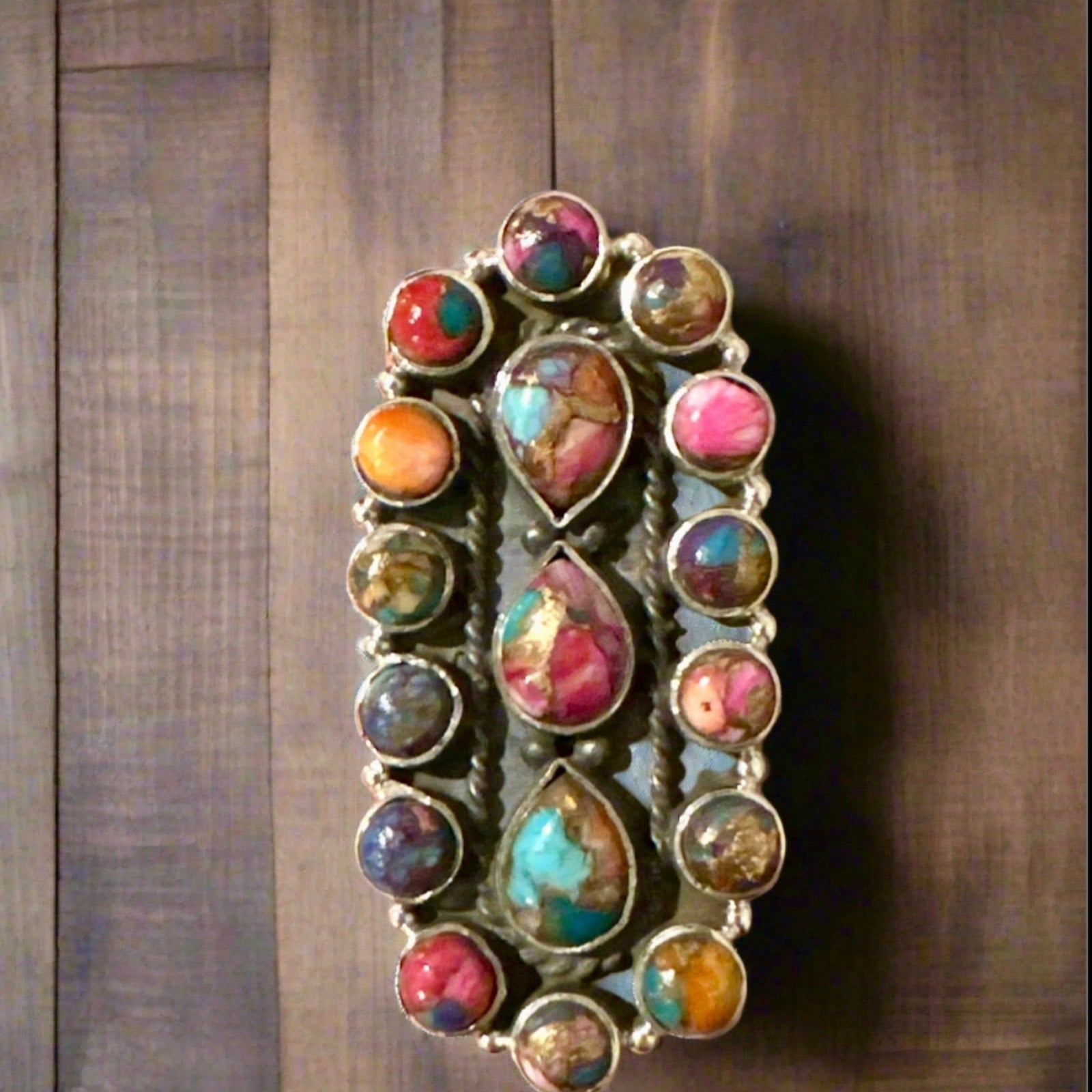 Stunning Spiny Oyster Pink Dahlia Southwestern Ring Adjustable 2” Long