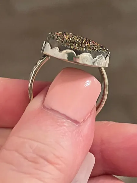 Titanium Druzy Artisan .925 Sterling Silver Ring Size 8.5