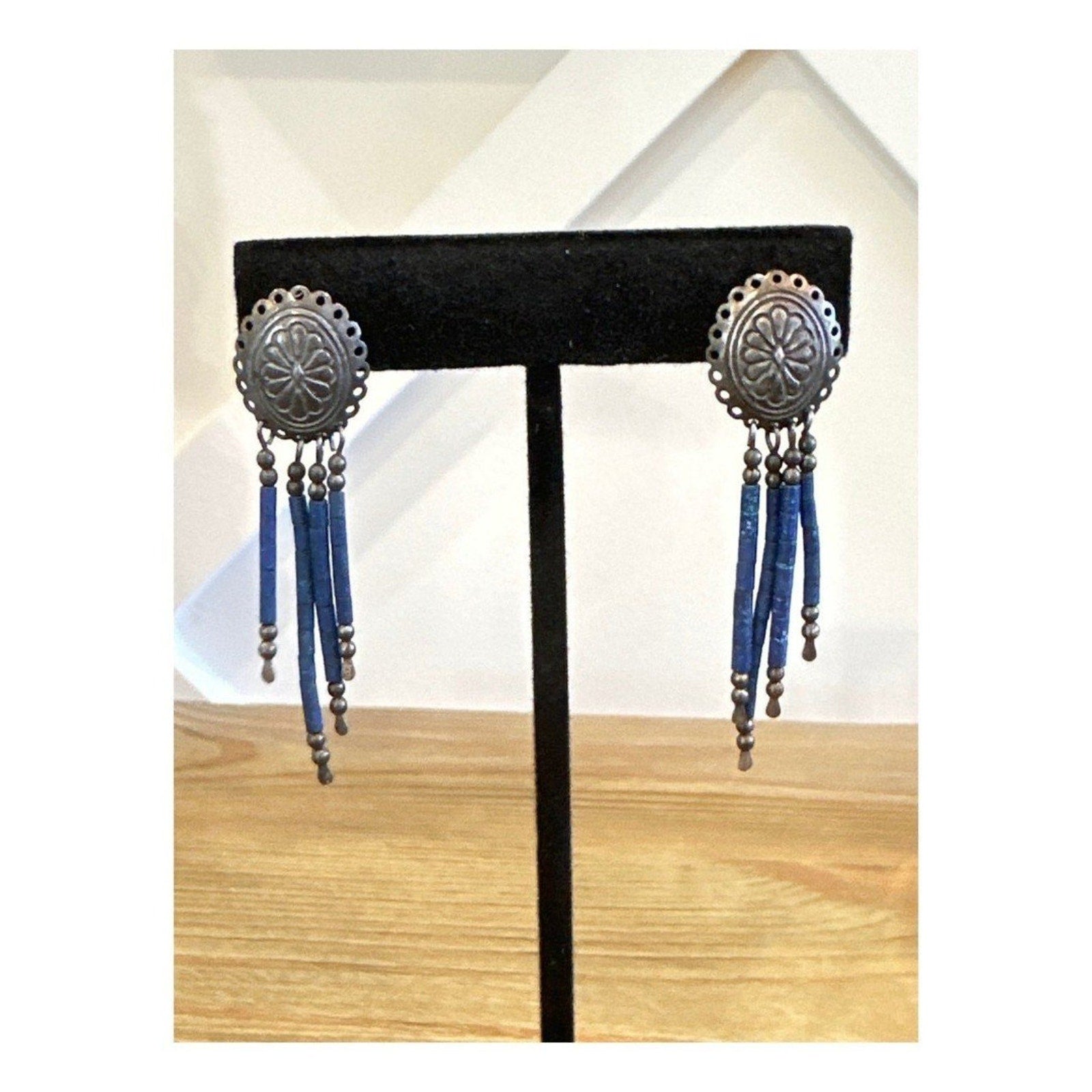 Vintage Sterling Silver Dangle Earrings with Lapis Lazuli 2"