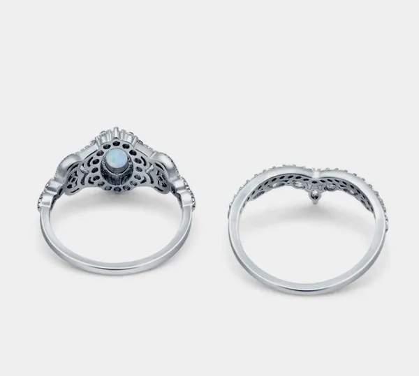 Wedding Band Bridal Ring Oval Accent Vintage Lab Created White Opal 925 Sterling Silver