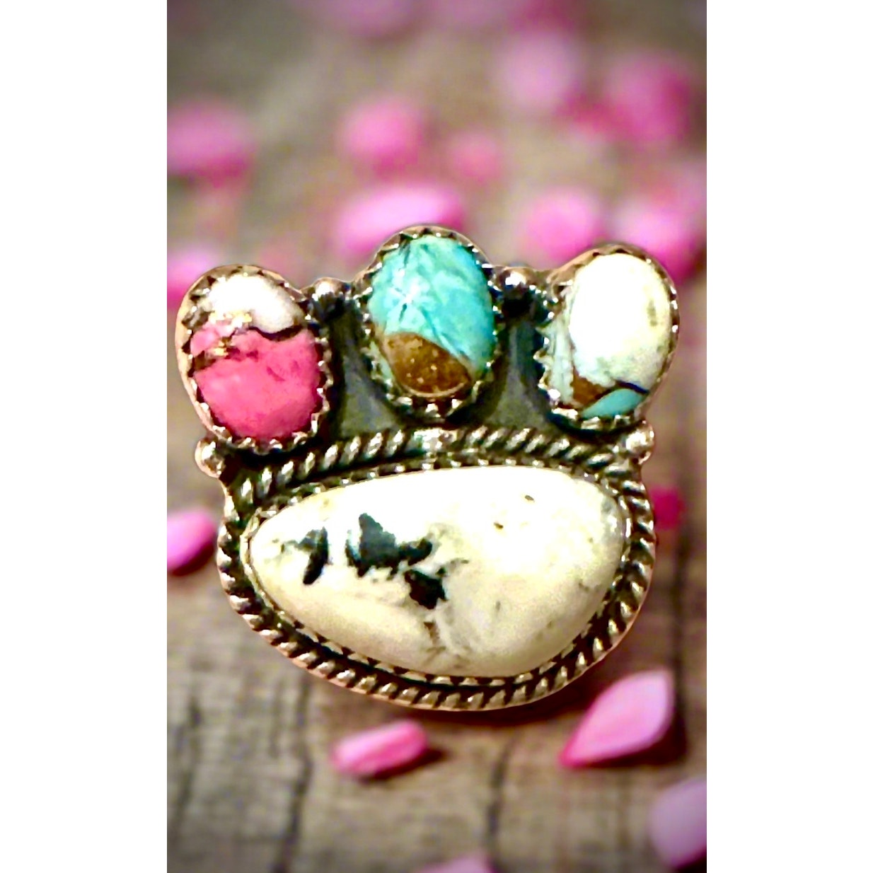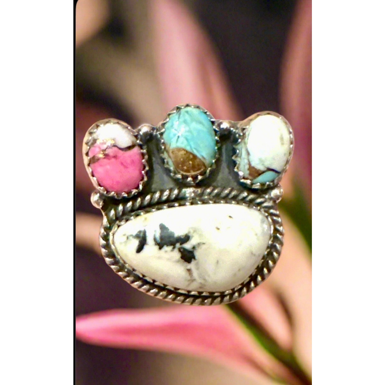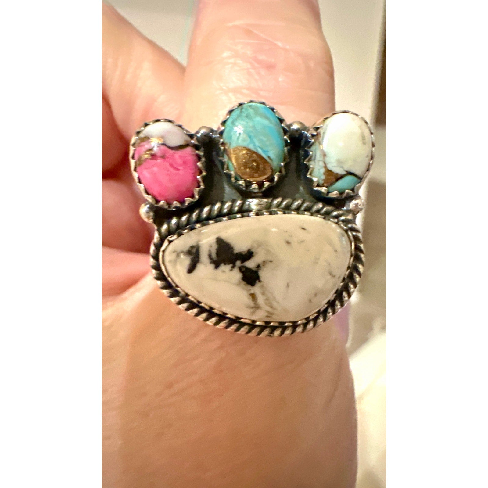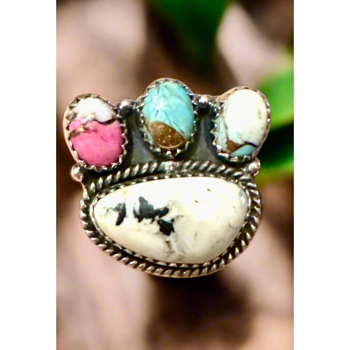 Whit Buffalo & Cotton Candy Cluster Sterling Ring Adjustable 5-11