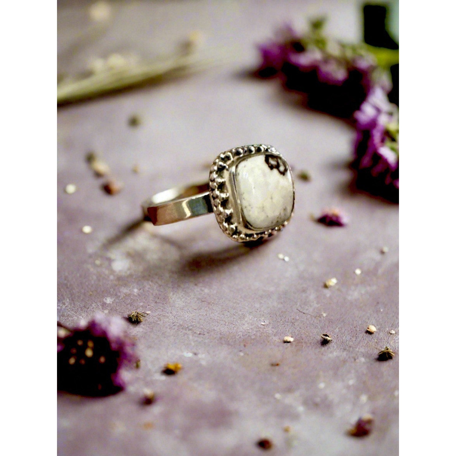 Wild Horse Jasper Dots Square Shaped Dainty Ring Size 7